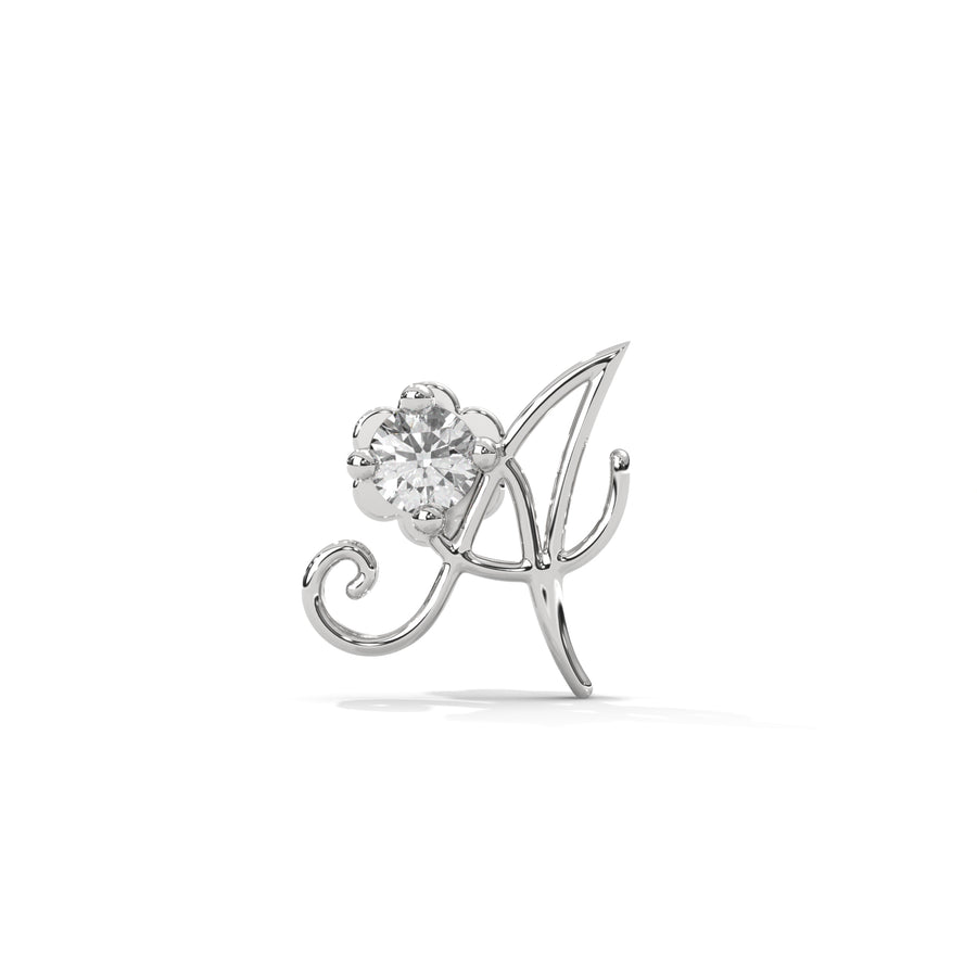 Elegantly crafted A-shaped initial nose pin featuring precision metalwork and superior comfort. This distinctive piece offers a personalized touch to your facial jewelry collection while ensuring secure placement throughout the day. Designed for those who appreciate subtle yet meaningful adornments.
