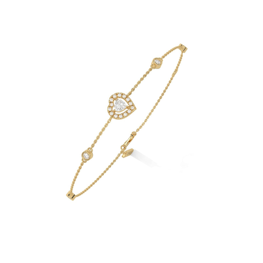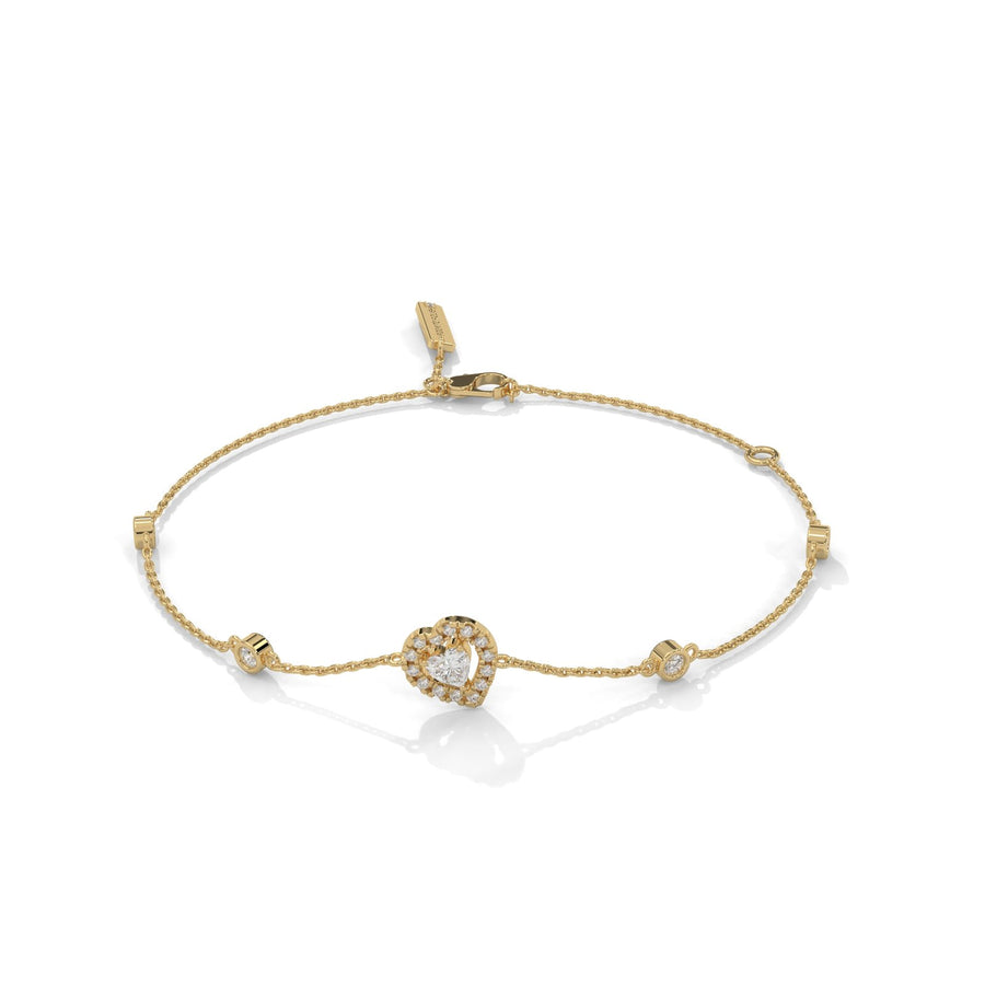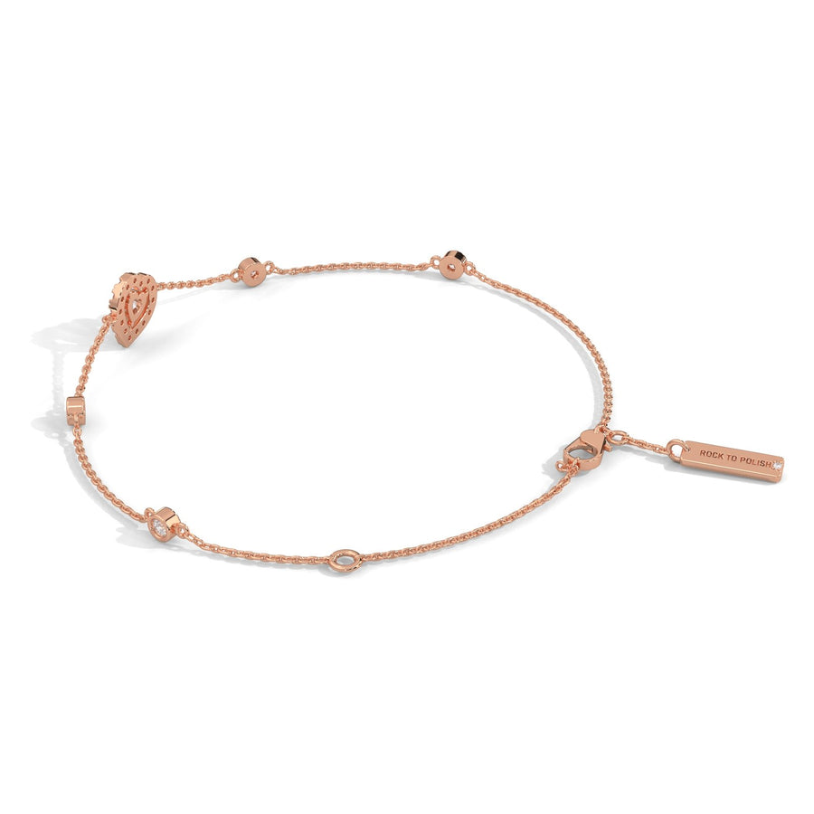 The Heart Bezel Set Diamond Bracelet features a delicate design with sparkling heart-shaped diamonds set in bezel settings. Crafted in 14KT gold, this bracelet brings a blend of romance and elegance to your jewelry collection. The heart-shaped diamonds add a charming and sentimental touch, making it a perfect gift for someone special or a luxurious treat for yourself. With its refined design and timeless appeal, this bracelet is ideal for both daily wear and special occasions, offering a beautiful balance of simplicity and sophistication.