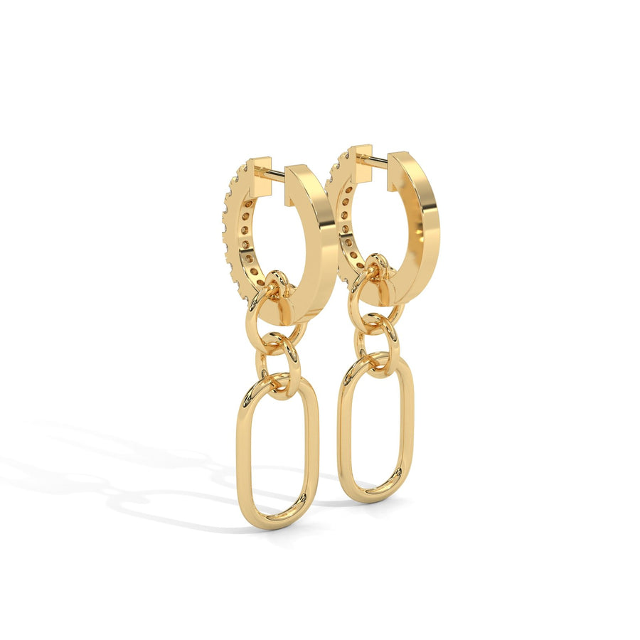 These Link & Loop Diamond Earrings combine timeless elegance with a modern twist. Crafted from 14KT gold, they feature a unique link and loop design that beautifully showcases the sparkle of diamonds. The yellow gold setting complements the diamonds, creating a radiant and refined look. These earrings are perfect for adding a touch of luxury to any outfit, whether for a special event or everyday wear.
