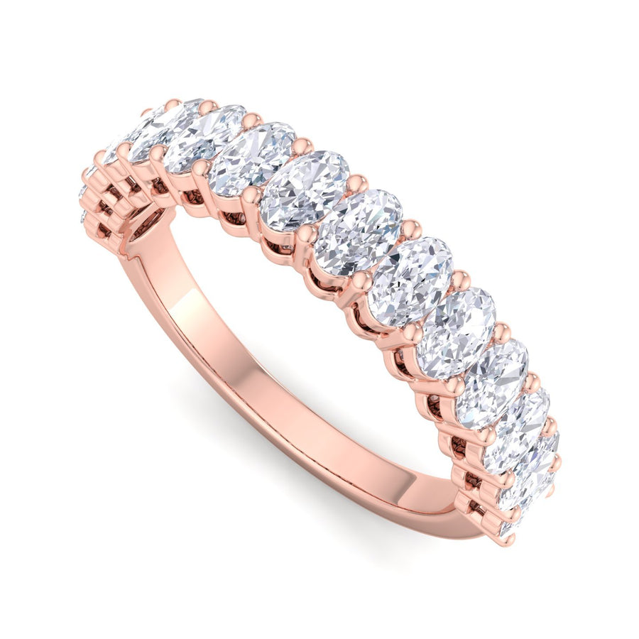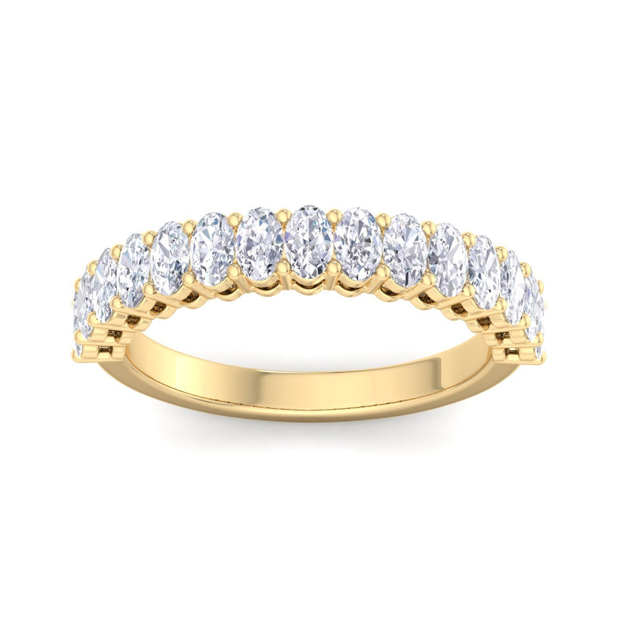 The Oval Diamond Half Eternity Band Ring showcases a beautiful row of oval-shaped diamonds set halfway around the band, creating a continuous shimmer of elegance. This design offers timeless sophistication with a modern touch. Available in yellow, white, or rose gold, this band is perfect for adding a touch of luxury to any occasion. Ideal for those seeking a blend of classic and contemporary styles, this ring is available in a variety of sizes to ensure a perfect fit.