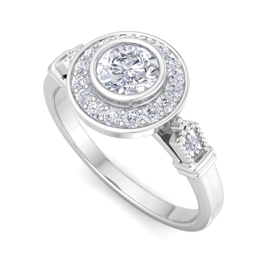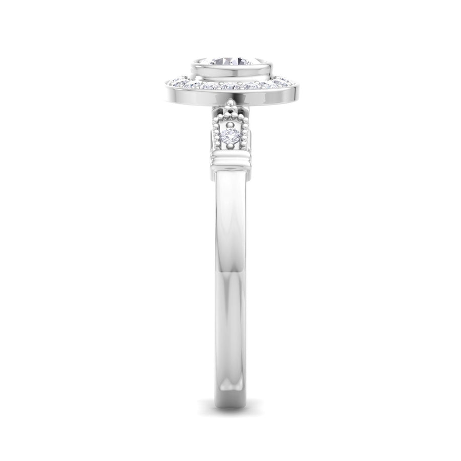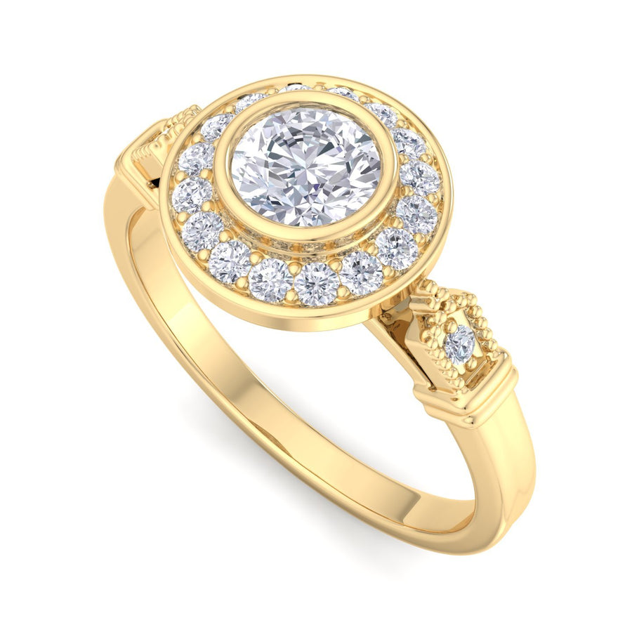 This stunning Round Diamond Bezel Set Halo Pave Engagement Ring is a true symbol of love and commitment. Featuring a brilliant round diamond at its center, encircled by a halo of smaller diamonds set in a pave style, it radiates elegance and sparkle. Crafted from your choice of yellow, white, or rose gold, the bezel setting ensures durability while enhancing the diamond's brilliance. This exquisite piece is the perfect representation of timeless beauty and a promise of forever. Whether it's an engagement or a milestone celebration, this ring is sure to be cherished for a lifetime.