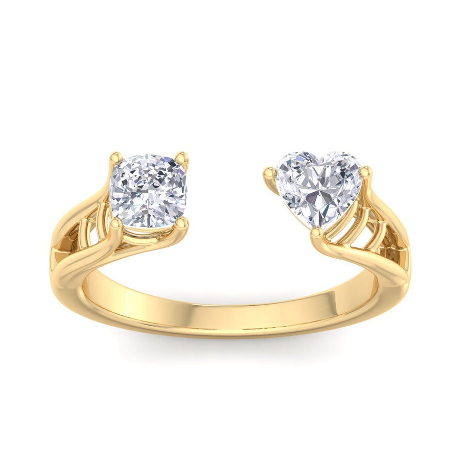 The Stacker Heart and Cushion Ring is a stunning fusion of two timeless shapes—heart and cushion. Crafted in yellow gold, this ring features a unique combination of designs, making it a perfect statement piece for any occasion. Its stackable design allows it to be layered with other rings, offering versatility and personalization. Whether worn alone or stacked, this ring radiates elegance and sophistication, making it a must-have addition to your jewelry collection.